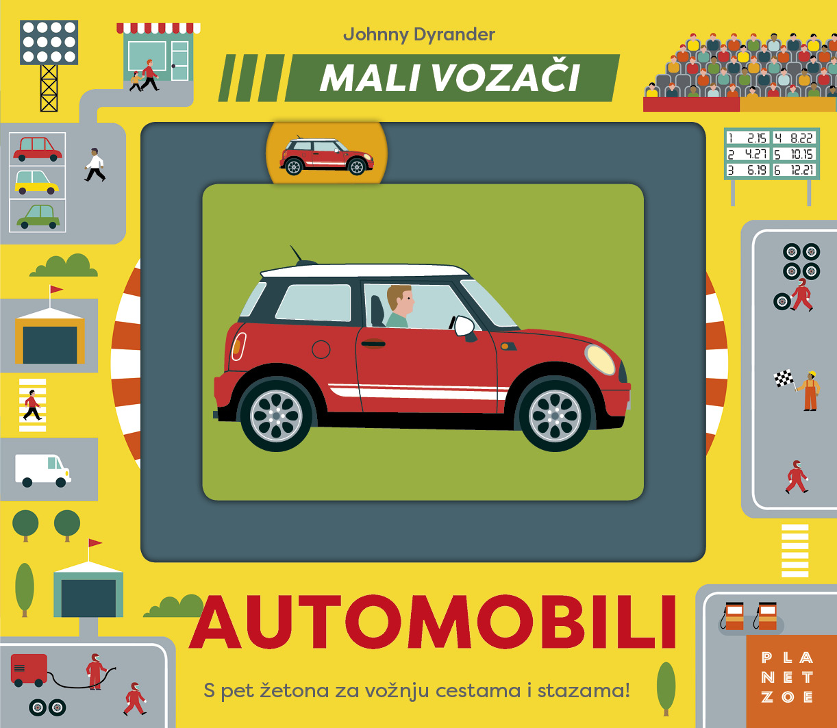 Upoznajte pobliže različita cestovna vozila na motorni pogon: gradski automobil, sportski automobil, trkaći bolid i putnički kombi, a zatim im pomozite da obave zadatak unutar stranica zanimljive interaktivne slikovnice s pomičnim žetonima i stazama. U ovoj prelijepoj dizajnerskoj slikovnici mali obožavatelji vozila upoznat će se razlike između različitih vrsta automobila. Na svakoj lijevoj stranici nalaze se slike pojedinih vozila s nazivima njihovih najvažnijih dijelova, a na desnoj stranici nalaze se prizori ulica, trkaćih staza i cesta s 3D udubljenim stazama i pomičnim žetonima koji predstavljaju određeno vozilo. Navigirajte gradskim ulicama i sparkirajte gradski automobil, vozite sportski auto vijugavom cestom, krenite u utrku bolidom na stazi i, naposljetku, odvezite putnike u kombiju u zračnu luku.